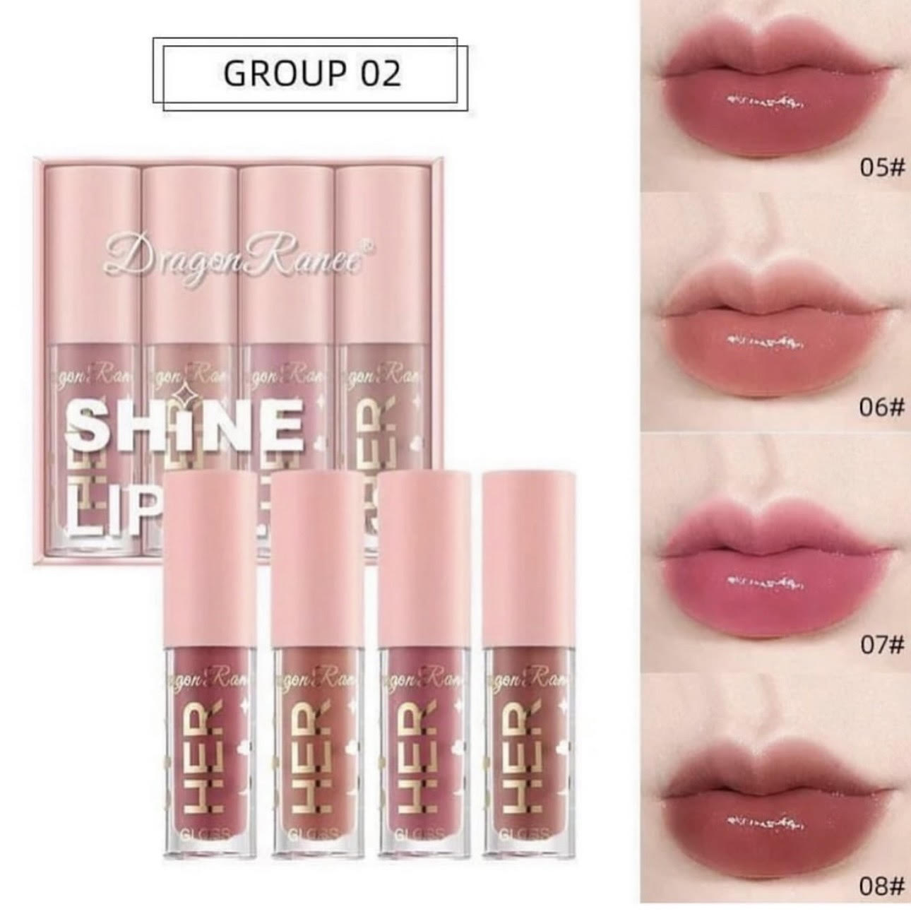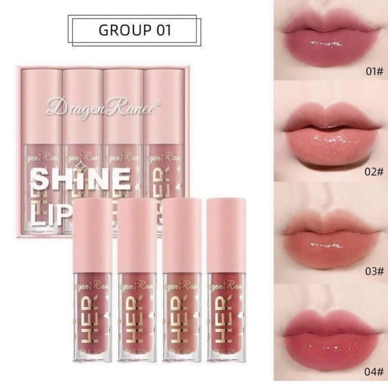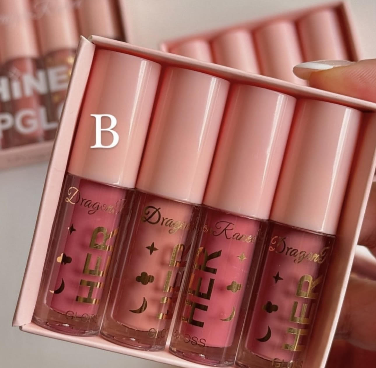 پک لیپ گلاس اورجینال دراگون پک ۴ عددی لیپ گلاس های دراگون بافتش مثل این رژلب خیس کره ایاست خیلی نازه روی لب ورق بزنید تست رنگشو ببینید رنگ بندی کامل